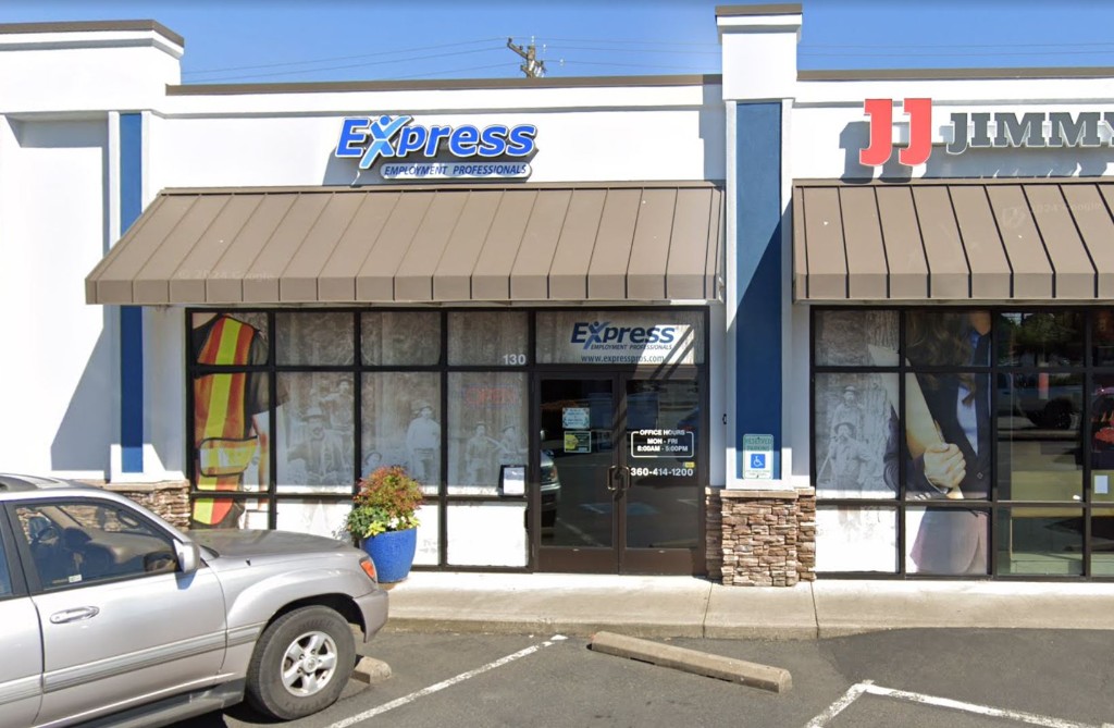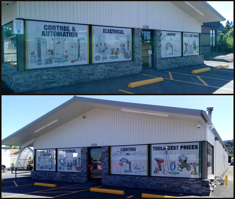Vinyl graphics for glass and facades: window graphics, privacy films, hours and branding panels, perforated window vinyl, and cut lettering. Example: Express Employment in Longview, Washington. See storefront and window graphics examples.